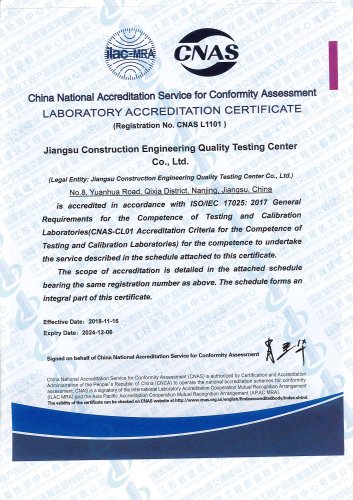 國家城市軌道交通建設(shè)工程產(chǎn)品質(zhì)量監(jiān)督檢驗(yàn)中心, 依托江蘇省建筑科學(xué)研究院和江蘇省建筑工程質(zhì)量檢測(cè)中心在城市軌道交通建設(shè)工程領(lǐng)域的綜合技術(shù)優(yōu)勢(shì),于2016年10月獲得國家認(rèn)證認(rèn)可監(jiān)督委員會(huì)批準(zhǔn)授權(quán)..